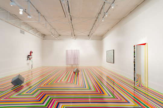 Jim Lambie made his first ‘Zobop’– the multicoloured, multilayered vinyl floor installation for which he is most widely recognised – in 1999. If a thing’s worth doing, the saying goes, it’s worth overdoing; for his exhibition at the Goss Michael Foundation in Dallas, the Glasgow-based artist reprised his 2004 iteration of the work, Zobop Fluoro, in the foundation’s expansive new premises. (His exhibition was the first solo presentation after an inaugural group show.)