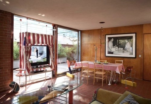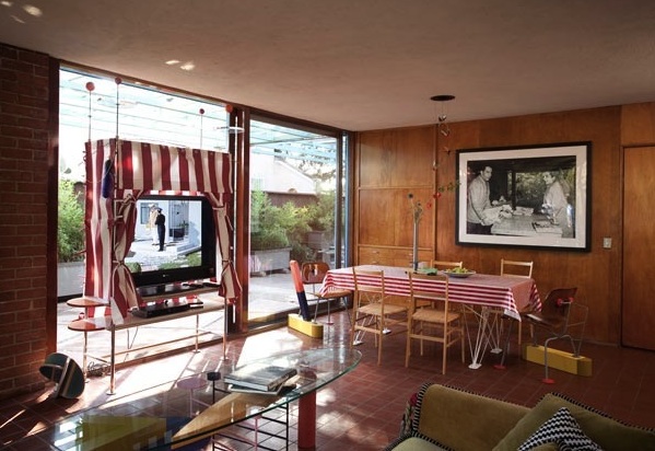 He finished the job in 1950, and the house has remained in the family ever since. Peter and his wife Donna moved into it two years ago and in 2010 it was granted Historic-Cultural Monument status by the City of L.A. It’s a simple, single storey building in the mid-century Californian style, with an open-plan living and dining room with floor to ceiling windows that open onto a private terrace and lush garden (laid out by the landscape designer Garrett Eckbo, also a friend of the Shires). Van der Kar’s talent was for creating adaptable space; the largest bedroom can be bisected by a folding screen, which created two smaller bedrooms for the young Peter and his baby brother Billy. Off one corridor, no less than five doors open into different spaces; when photographer Julius Schulman visited, says Peter, he observed gruffly: ‘There’s Joe, being an architect!’