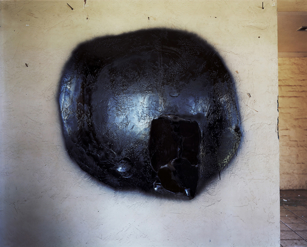 Divola’s Dark Star series, from 2008, was shot largely in an empty house fifteen miles inland from Riverside, at the eastern edge of the megalopolis that stretches all the way to the Pacific Ocean. Large discs of black spray paint recollect the mysterious markings he had made in Vandalism. In the same house, Divola made the more recent series Theodore Street (2008–12) using an ultra-high-resolution method of photography called Gigapan. Between 40 and 120 separate photographs are stitched together by software to make a picture that can be printed at large scale without losing detail. Divola says his early prints are small only because, printed any larger, the raw materiality of his subject—scraps of plywood, shattered glass—would have been overwhelmed by the grain and fuzz of the photograph. In prints up to five by ten feet, some of which will be shown in Santa Barbara, Divola physically enters the scene and secretes himself among the details. There is plenty of space for the artist to get lost.