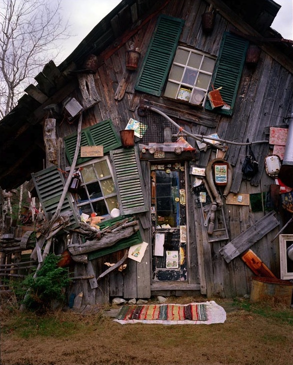 At first, it was enough for him simply to make a home for himself. But within five years, passersby noticed strange totems in the trees and on the ground around the property. These constructions were made from household refuse: bits of broken computers, sports equipment, clothing, washing machines, cookers, and so on, bound together with string or wire.