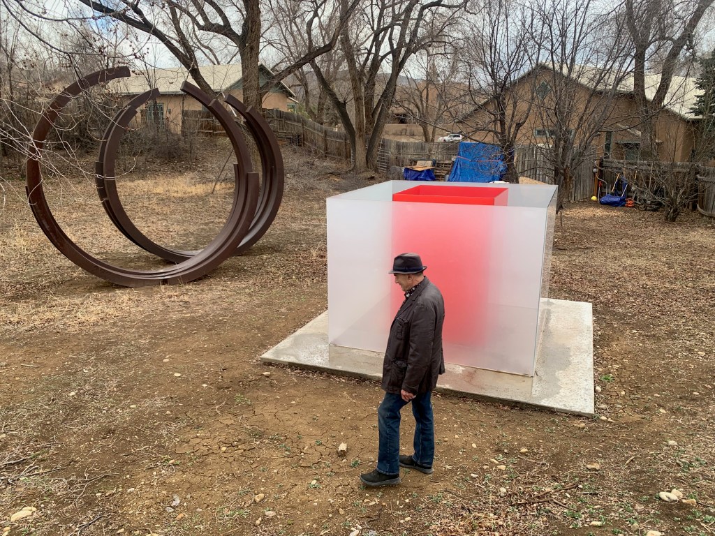 Bell’s prodigious output over the years has also included installation, collage, works on paper, furniture and hanging tangles of Mylar which he calls “Light Knots”, but glass has remained at its core. In his Taos studio, shelves hold boxes of bevelled glass squares and triangles, seemingly in every colour under the sun; on wide tables, Bell, 82, experiments by fixing panels together into cubes and corners, cubes within cubes and open-topped boxes.