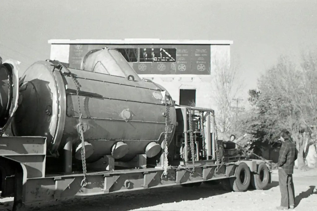 Back indoors, Bell walks around part of the studio that resembles a scientific laboratory, packed with grey devices bristling with cables and pipes, red and green buttons, toggle switches and dials. Many parts come from salvage sales at the nearby government laboratories in Los Alamos, where the atomic bomb was made. Dominating the studio is a huge vacuum chamber, a steel cylinder six feet in diameter with a hatch at one end, essential for his art. Bell calls it “The Tank”. He ordered it in 1968 for $68,500 — his entire savings at the time. “I didn’t have enough money to buy a piece of glass to stick in there! Most of my friends thought I was nuts.”