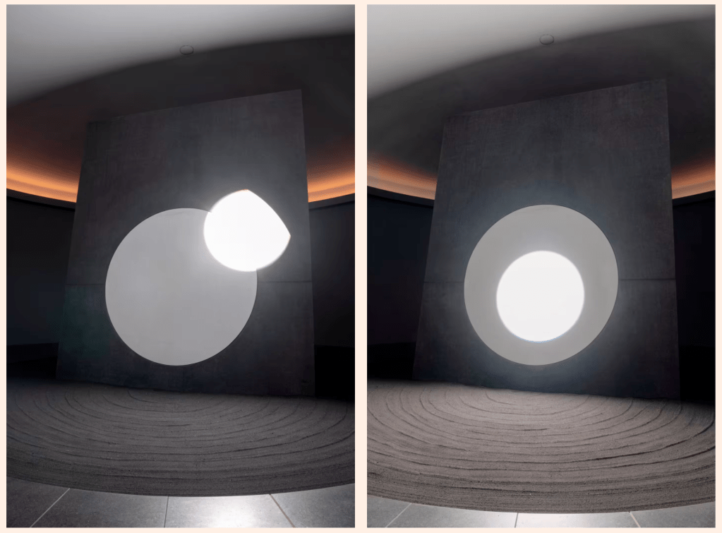 One of his earliest and best-known “Skyspaces” is at MoMA PS1 in New York: its title, “Meeting” (1980-86/2016), acknowledged the meeting houses of Turrell’s Quaker upbringing. He has often quoted his grandmother, who instructed him that the purpose of meditation was to “meet up with the light inside”.